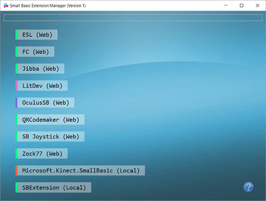 The following smaller extensions are provided with full source code for demonstration purposes for you to start building your own. They are no longer actively developed, but still show how various operations can be performed and interact with SmallBasicLibrary.dll.